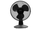Stolní ventilátor • moderní design • 3 rychlostní stupně • barva černá • výška 38 cm • průměr 30 cm • jmenovitý výkon 38 W • jmenovité napětí 220 - 240 V • materiál plast, kov • přepínatelný oscilační pohyb až do 100°