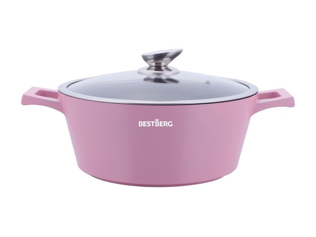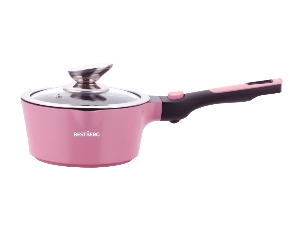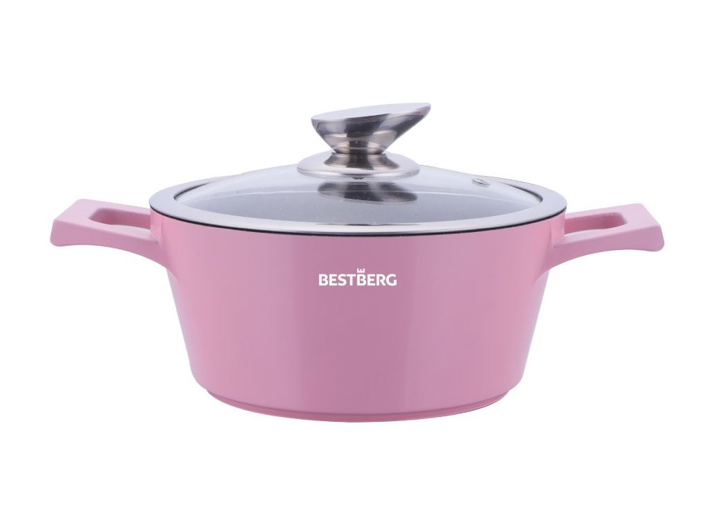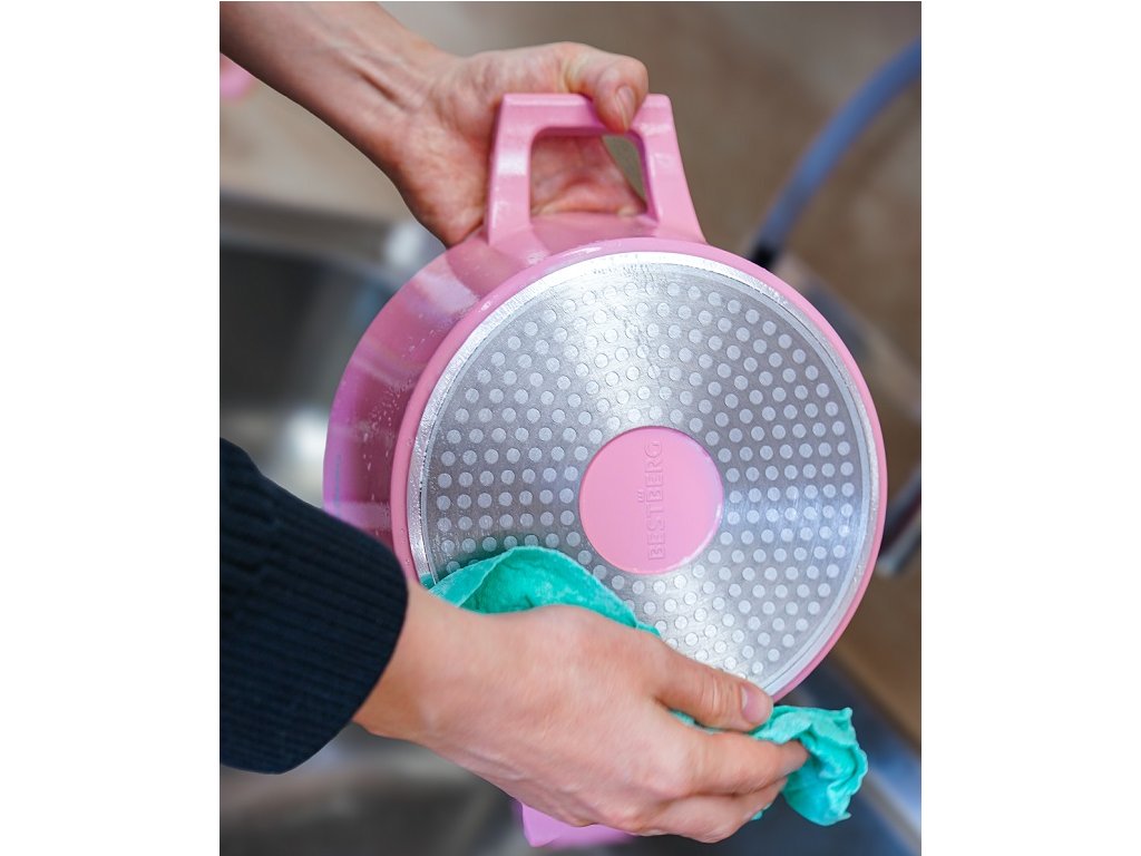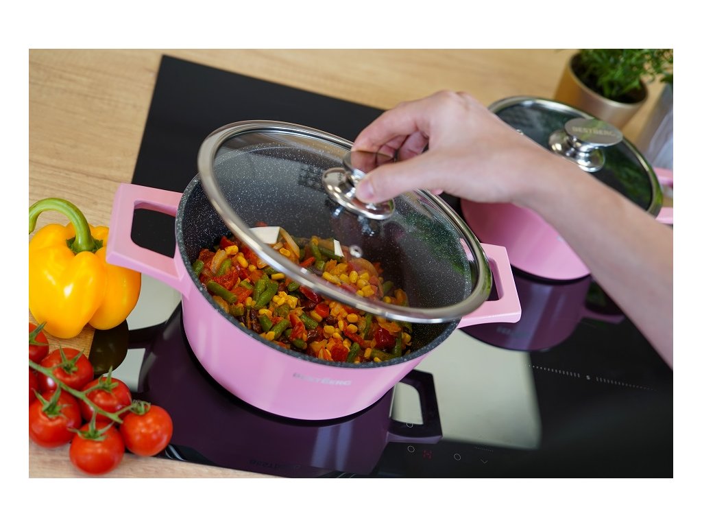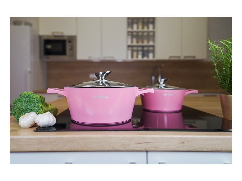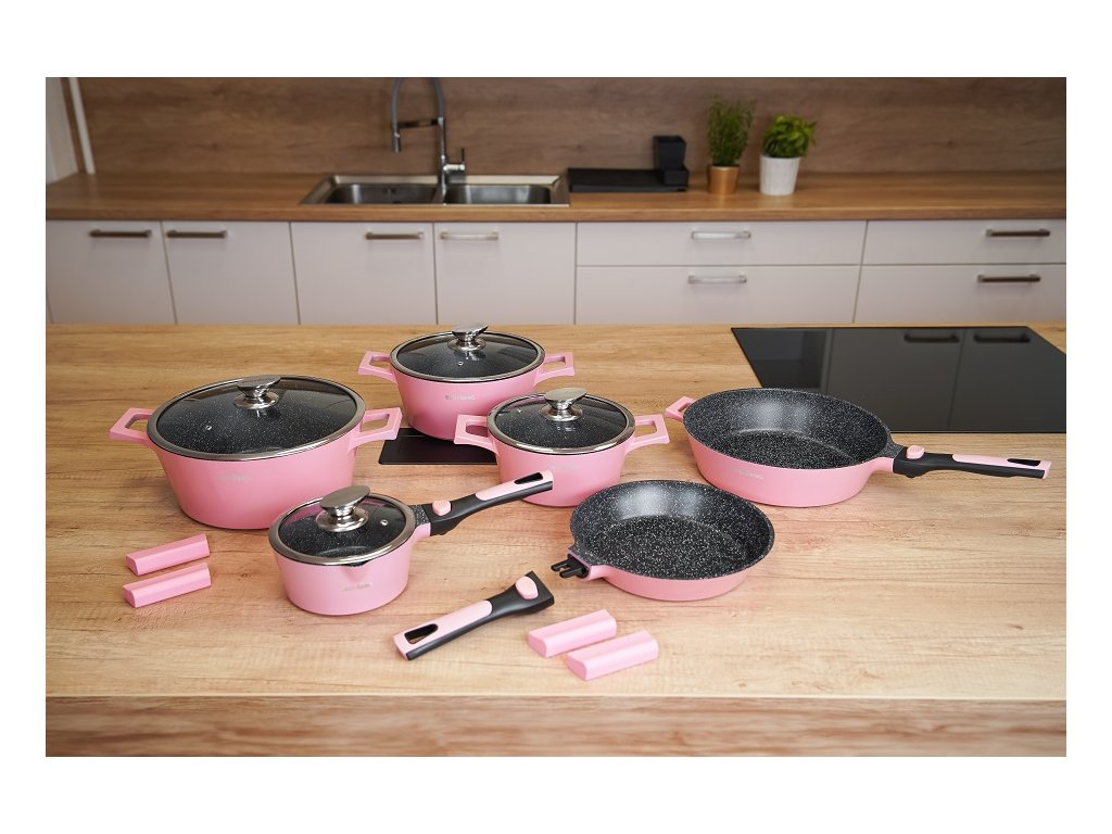 14dílná prémiová sada kuchyňského nádobí s nepřilnavým mramorovým povrchem BestBerg BBN-1014P / růžová