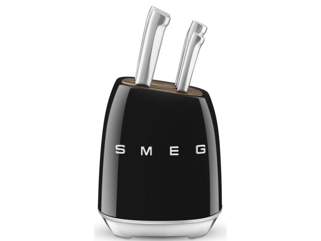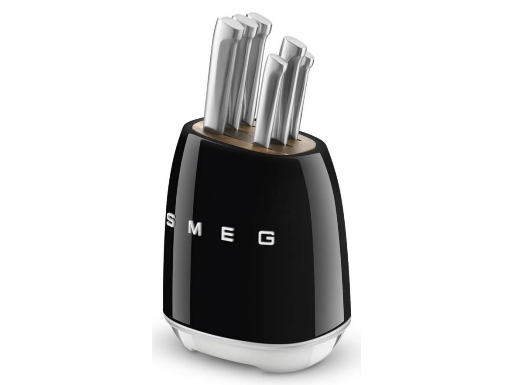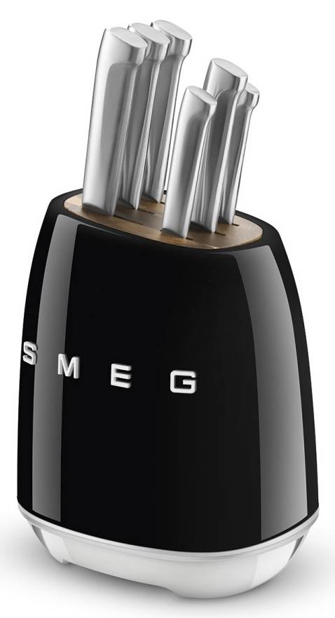 6dílná sada nožů se stojanem Smeg 50's Style KBSF02BL / plast/nerezová ocel/akátové dřevo / černá/nerez