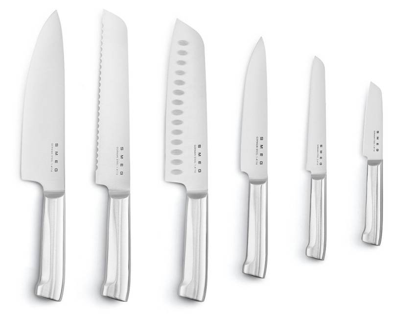 6dílná sada nožů se stojanem Smeg 50's Style KBSF02BL určená pro každodenní použití. Všechny kusy byly vyrobeny z vysoce kvalitní nerezové oceli, která poskytuje dokonalou odolnost. Jejich vysoce odolné ostré čepele výrazně usnadňují řezání. Pestrá sada nožů, která je doplněna stojanovým blokem. Každý nůž má své využití a jeho ostří bylo navrženo a navrženo tak, aby vám nabízel ten nejlepší řez pro každou ingredienci.
