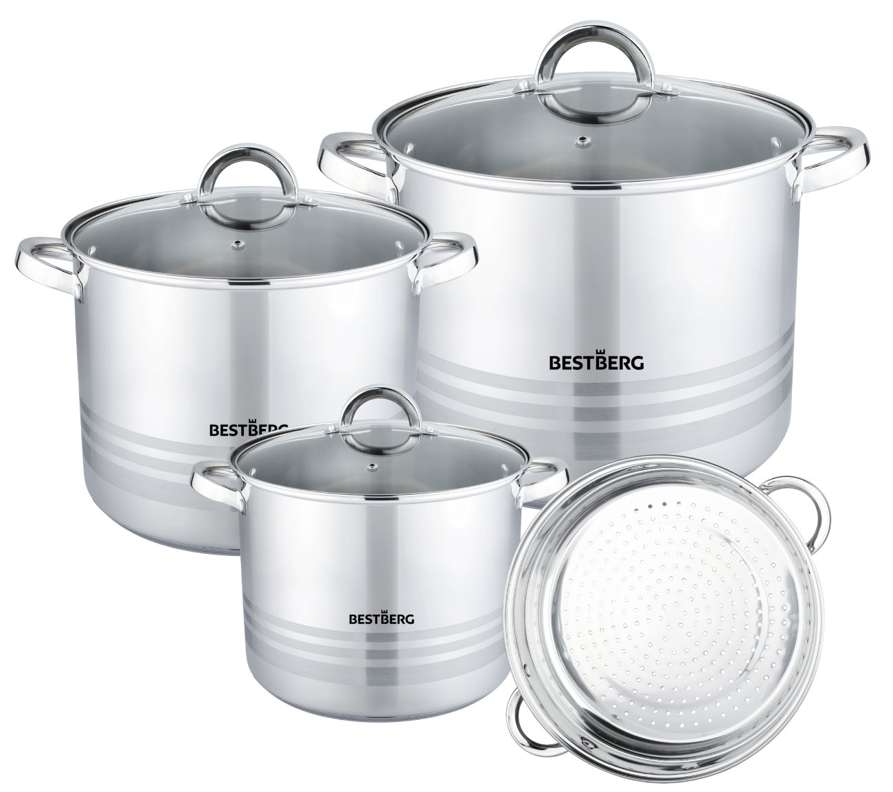 7dílná sada nerezových hrnců BestBerg BBSC-3S / stříbrná