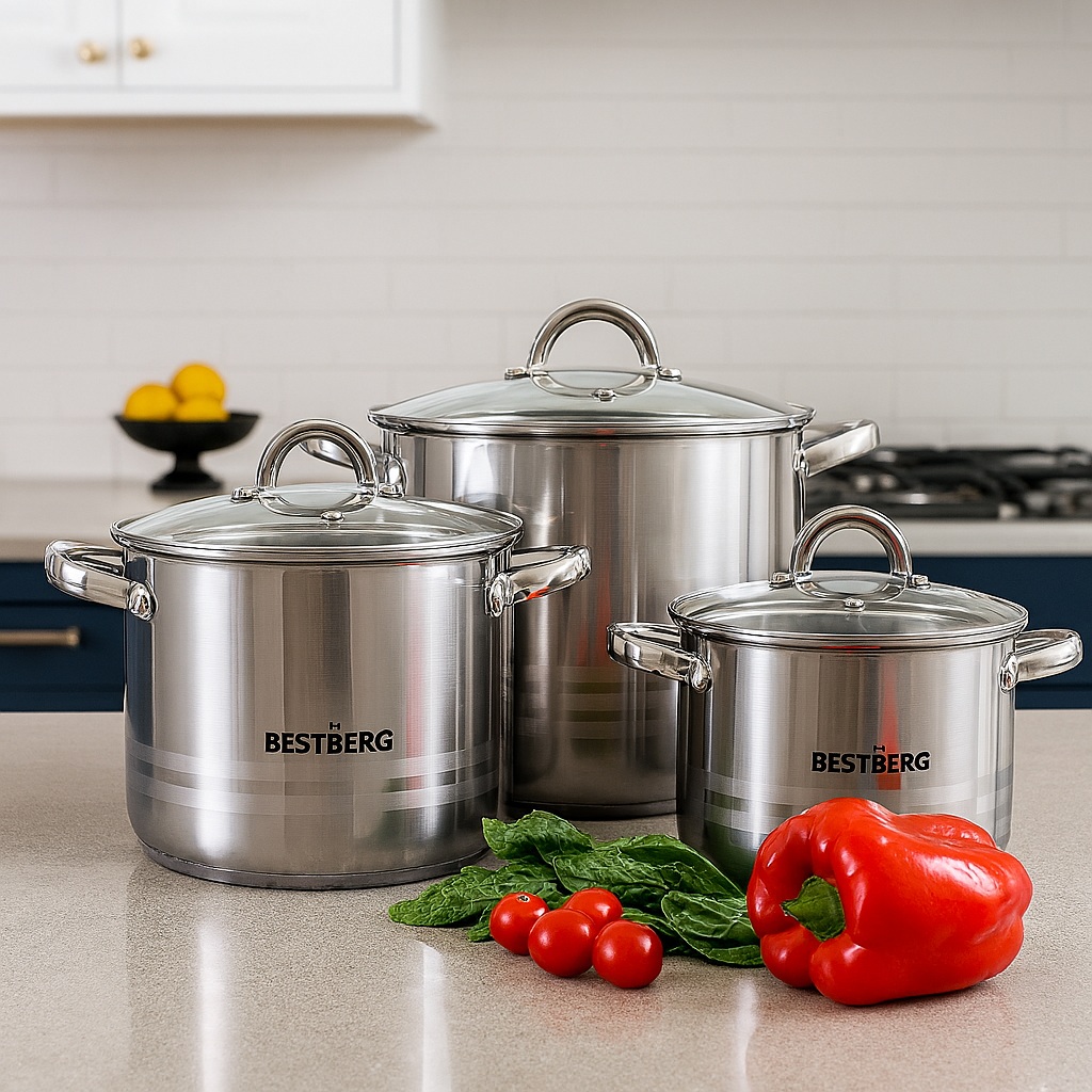 Chcete vařit jako profesionálové, a navíc si užívat dlouhou životnost nádobí? Pak by vám neměla chybět 7dílná sada nerezových hrnců s poklicemi BestBerg.