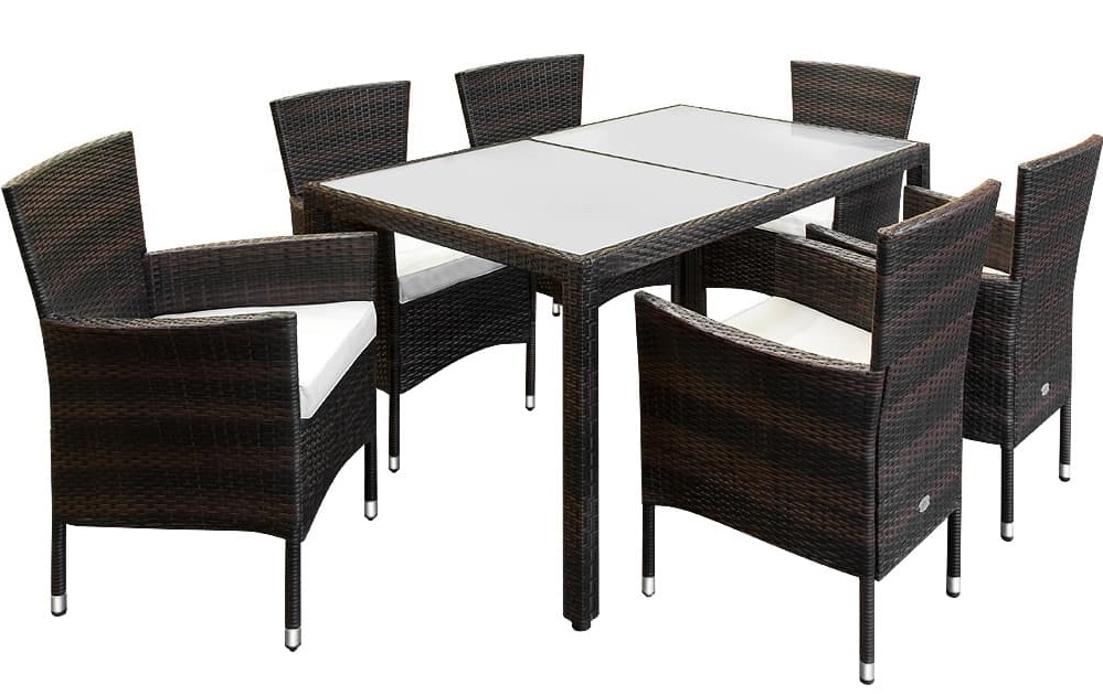 - 7dílný zahradní jídelní ratanový set s polstrováním BestBerg BBRF-80B / hnědá/béžová