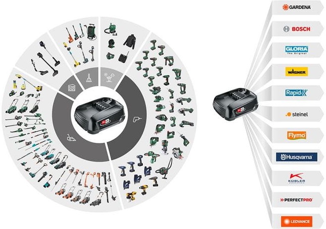Jedinou baterií můžete napájet klidně celou armádu zahradních pomocníků. Gardena AquaBrush používá akumulátory aliance POWER FOR ALL, což znamená, že nemusíte mít speciální baterii na různá zařízení, ale stačí vám jedna. Netrpí vaše peněženka a ulevíte i naší planetě.