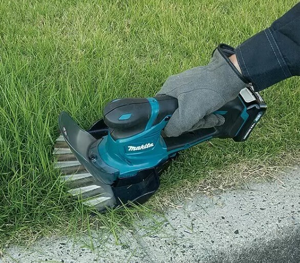 Akumulátorové nůžky na trávu a keře Makita lze napájet všemi bateriemi řady Makita 12 V. Díky vyměnitelné čepeli toto praktické zařízení spojuje dva užitečné nástroje v jednom. Nůžky na trávu umožňují přesné stříhání okrajů trávníku, zatímco nůžky na keře umožňují stříhání malých keřů. Obě břitové destičky lze vyměnit v několika jednoduchých krocích, což nabízí největší možnou flexibilitu.