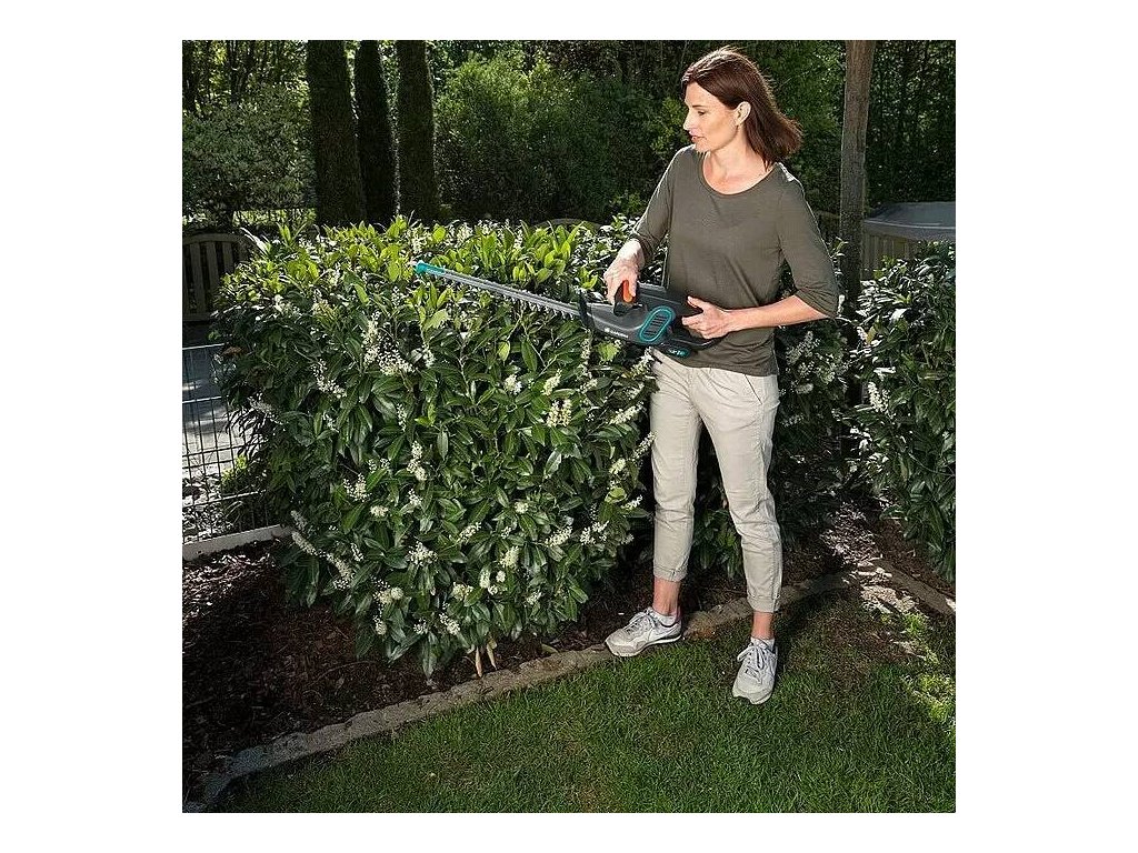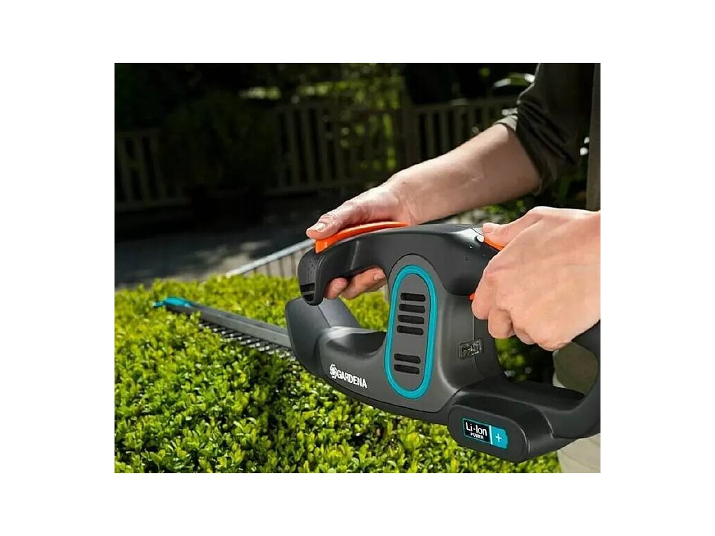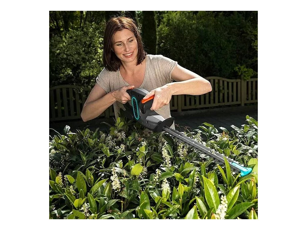 - Aku nůžky na živý plot Gardena EasyCut 14,4 V / Li-ion / 2 Ah / baterie + nabíječka / šedá