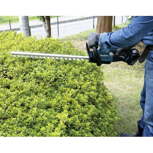 Makita DUH506 jsou akumulátorové nůžky na živý plot, které se vyznačují výkonným a účinným 18 V pohonem s bezkartáčovým motorem. Tento bezúdržbový a odolný motor umožňuje bezdrátové stříhání větví o průměru až 20 mm. Díky 50 cm dlouhé stříhací čepeli je ideální pro rychlé zastřihování živých plotů. Nůžky na živý plot jsou ideální nejen pro soukromé použití, ale i pro poloprofesionální aplikace, protože díky nízké spotřebě energie motoru pracují obzvláště efektivně. Je také vybaven technologií XPT (Extreme Protection Technology), která nabízí optimální ochranu proti prachu a stříkající vodě, a to i v náročných podmínkách. Bezpečnostní funkce, jako je brzda motoru a ochrana proti hlubokému vybití, která automaticky vypne nářadí, když je akumulátor téměř vybitý, doplňují funkce aku vrtačky Makita DUH506 a činí z ní spolehlivou volbu pro zahradnické práce.