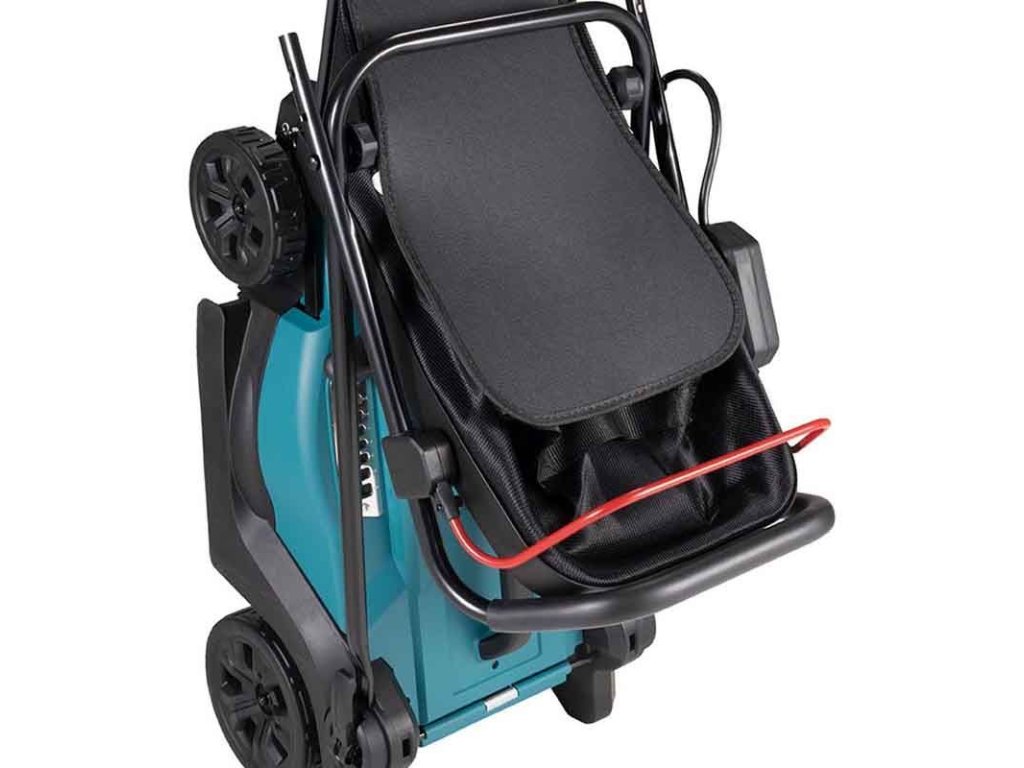 Sekačka má plastové žací ústrojí, ocelové pouzdro pro uchycení osy zadního kola, plastovou horní část, sběrný koš o objemu 30 litrů s ukazatelem hladiny trávy a sklopnou rukojeť pro snadné skladování a přepravu. Sekačka je také vybavena klíčem dětské pojistky, výstražnou kontrolkou kapacity baterie a okamžitým spuštěním. Chcete-li použít, jednoduše vložte jednu 18V Li-ion LXT posuvnou baterii.