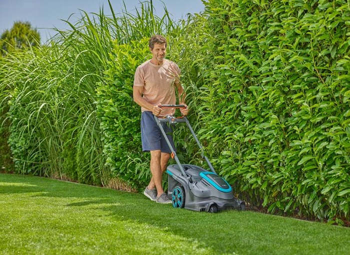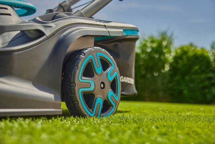 Aku sekačka na trávu Gardena PowerMax Duo 46/36V 14646-20 / šířka záběru 46 cm / 50 l / 90 dB / černá/modrá