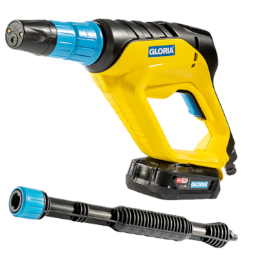 - Aku tlaková myčka Gloria Power for All MultiJet / bez baterie / 18 V / 24,9 bar / 240 l/h. / 1,5-6 Ah / modrá/černá/žlutá