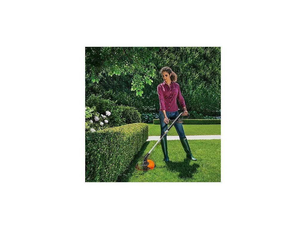 Aku vyžínač WG157E.9 od značky Worx se během několika sekund dá změnit z aku vyžínače na ořezávač hran, takže má široké uplatnění v každé zahradě. Nainstalovaný ochranný oblouk, který je sklápěcí, chrání rostliny během používání přístroje. Struna se u tohoto přístroje prodlužuje automaticky. Přístroj váží pouhých 1,9 kg (bez akumulátoru) a snadno se s ním manipuluje. Díky ergonomickému designu se tento vyžínač s pevnou přídavnou rukojetí pohodlně drží. Přístroj má šířku záběru 25 cm a je napájen Li-ion akumulátorem 20 V od značky Worx, který je součástí bateriového systému Worx PowerShare 20V.