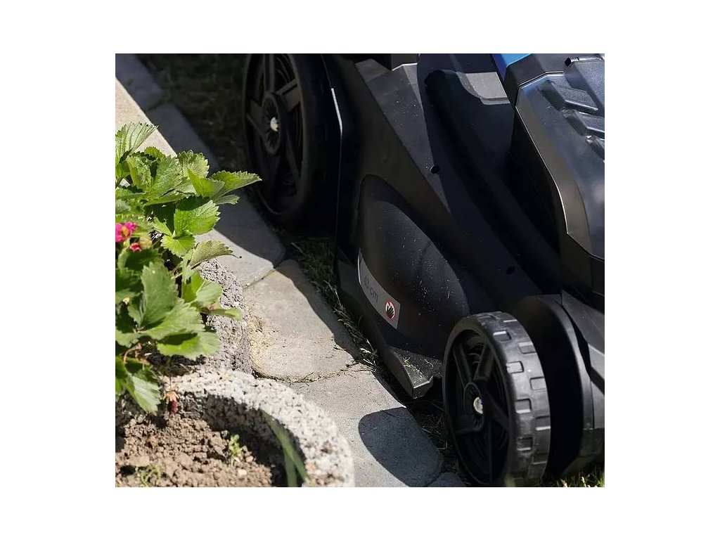 Se šířkou sečení 43 cm je akumulátorová sekačka Scheppach BC -MP430-X výkonným pomocníkem i pro větší zahrady s 600 až 700 m2 trávníku. Centrální nastavení výšky sečení v 6 úrovních od 25 – 75 mm a zatažení okraje trávníku na obou stranách umožňují optimální výsledky sečení. BC-MP430-X je poháněn výkonným bezkomutátorovým motorem.