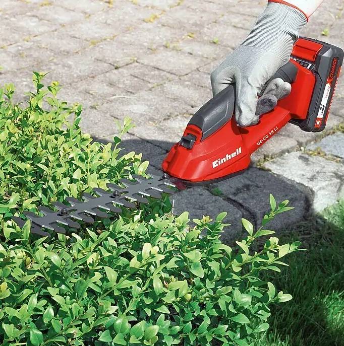 - Akumulátorové nůžky na trávu a keře Einhell Power X-Change GC-CG 18 Li-Solo / bez baterie / šířka řezu 10 cm / rozteč zubů 8 mm / černá/červená