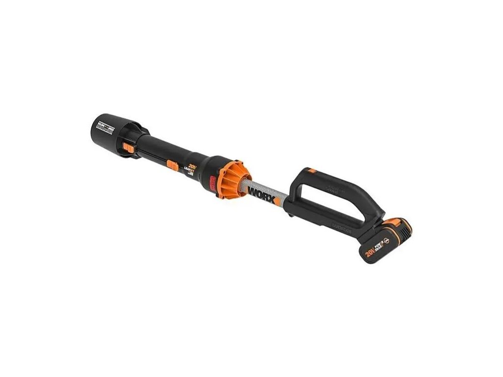 Akumulátorový foukač listí Worx PowerShare LeafJet WG543E.9 / 20 V / BEZ BATERIE A NABÍJEČKY / 209 km/h / 696 m3/h / černá/oranžová
