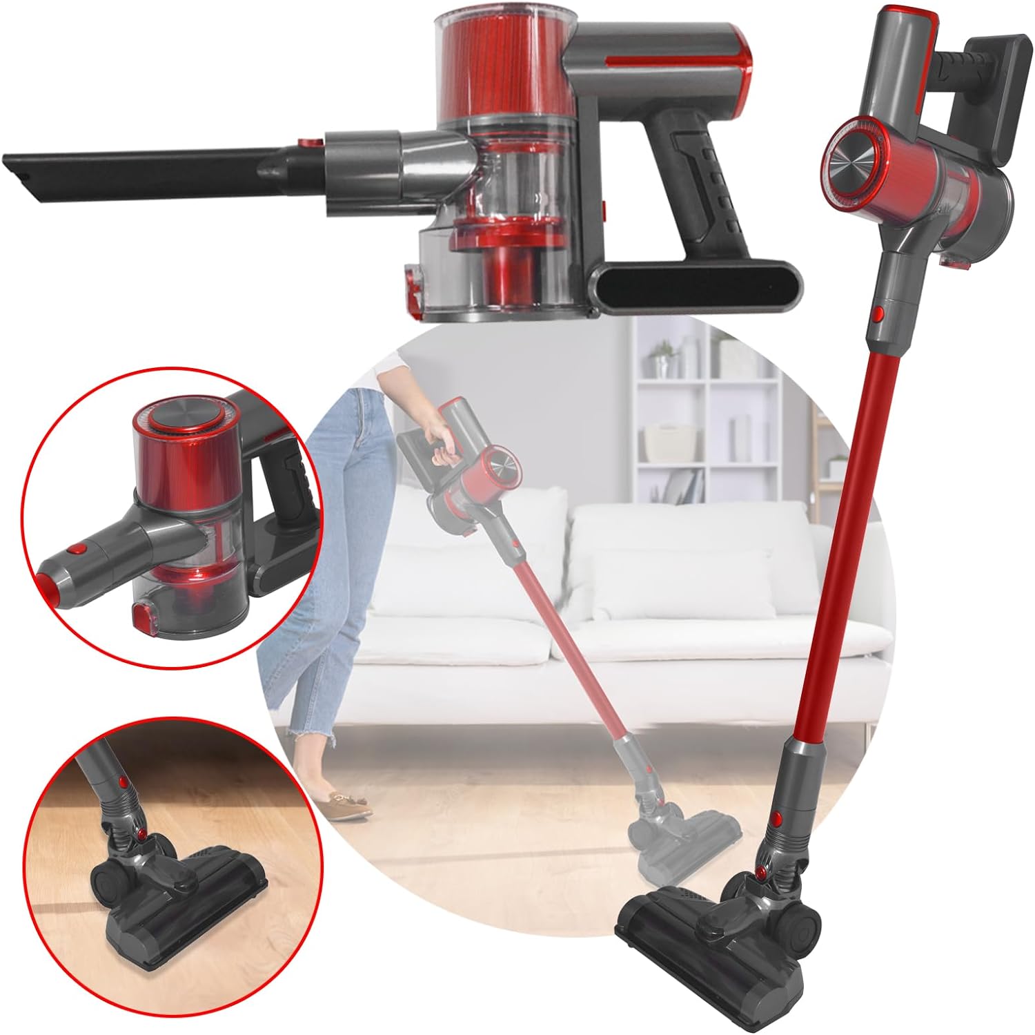 Akumulátorový tyčový bezsáčkový vysavač DMS Germany VCA-22R / 2v1 / lithium-iontová baterie / nabíjecí stanice / doba provozu 35 min. / červená