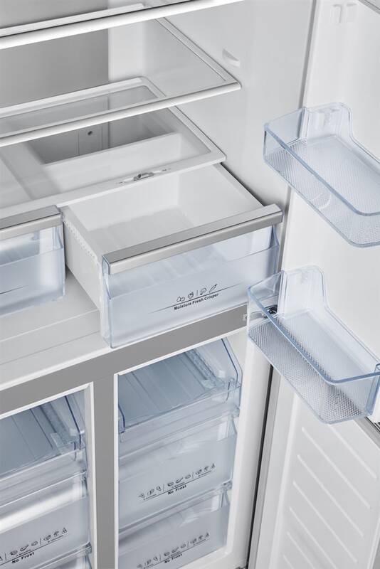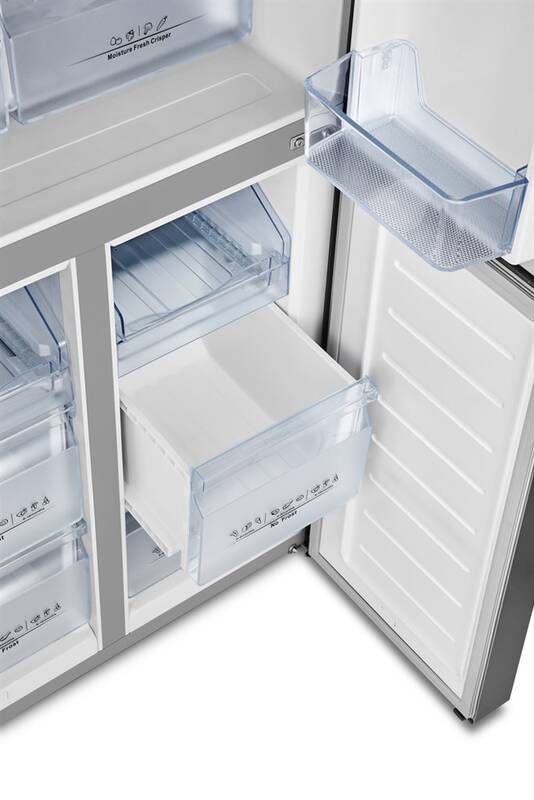 Americká chladnička s mrazničkou Hisense RQ563N4SI2 o výšce 181 cm s multi 3D cirkulací vzduchu poskytne velkou kapacitu pro potraviny a navíc nevyžaduje odmrazování. Tento volně stojící kombinovaný spotřebič je vybaven invertorovým kompresorem a řadí se do třídy energetické účinnosti E se spotřebou 279 kWh za rok a hlučností nepřesahující 40 dB. Nastavovat funkce i teplotu uvnitř chladničky umožňuje dotykové elektronické ovládání a LED displej. Vnitřní prostor chladicí i mrazicí části je osvětlován LED světlem, které je úsporné a vyniká svou dlouhou životností.