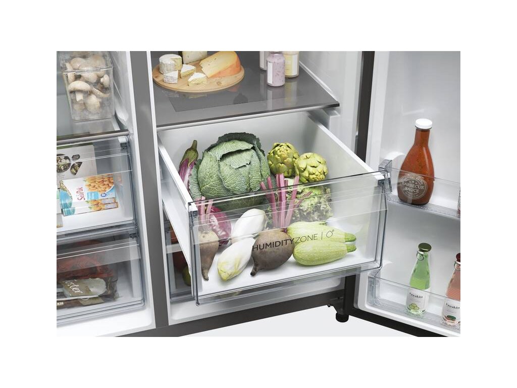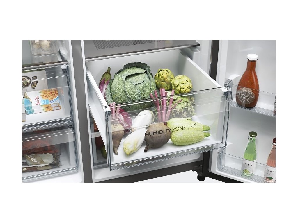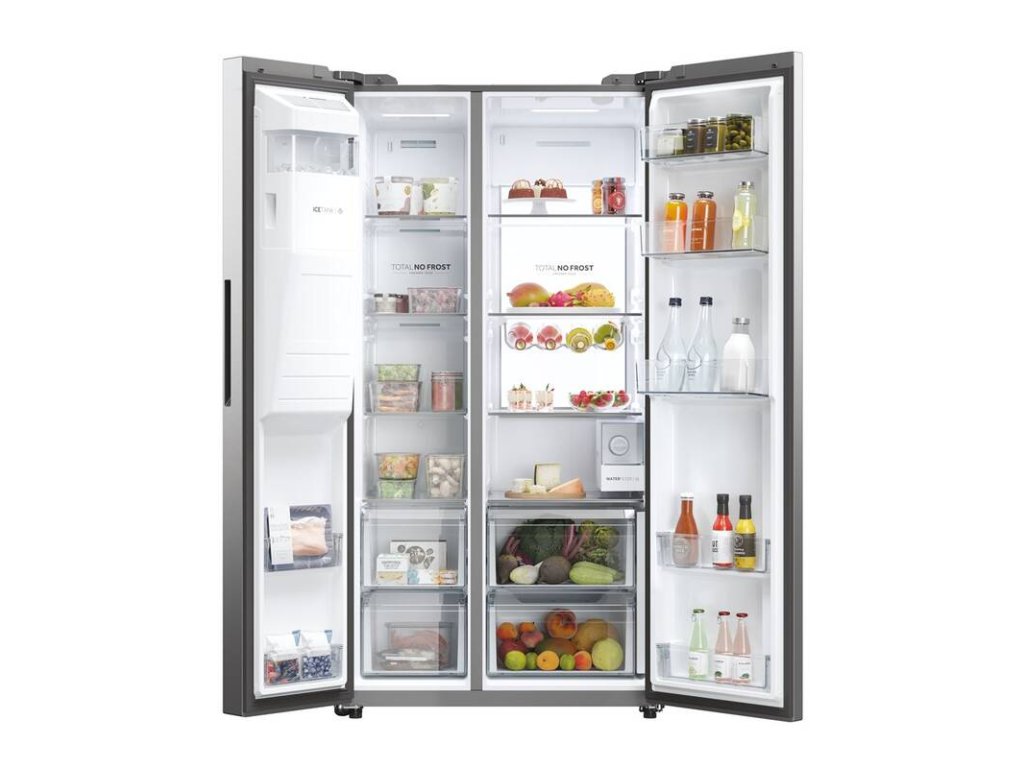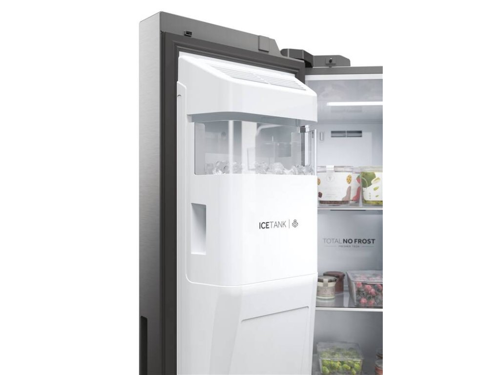 Chladnička Haier SBS 90 Series 7 je inteligentní volbou pro vaši kuchyni. S kombinací energetické úspornosti a spolehlivosti poskytuje špičkový design a výkonné funkce. Se šířkou 90 cm nabízí obrovský a snadno přístupný úložný prostor o celkové kapacitě 601 litrů. Díky moderním technologiím uvnitř chladničky zajišťuje optimální uchování potravin, minimalizuje energetické ztráty a pomáhá snižovat plýtvání potravinami.