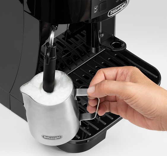 Automatické espresso De'Longhi Magnifica S Ecam 12.121.B je nadupaný přístroj, s jehož pomocí si v pohodlí domova připravíte kávu nebo cappuccino jako od skutečného baristy. Zařízení má příkon 1 450 W a vysoký tlak čerpadla 15 barů, který je zárukou lahodné chuti. Zabudovaný ocelový mlýnek má 13 stupňů nastavení hrubosti mletí a každý šálek bude mít dokonalé aroma.