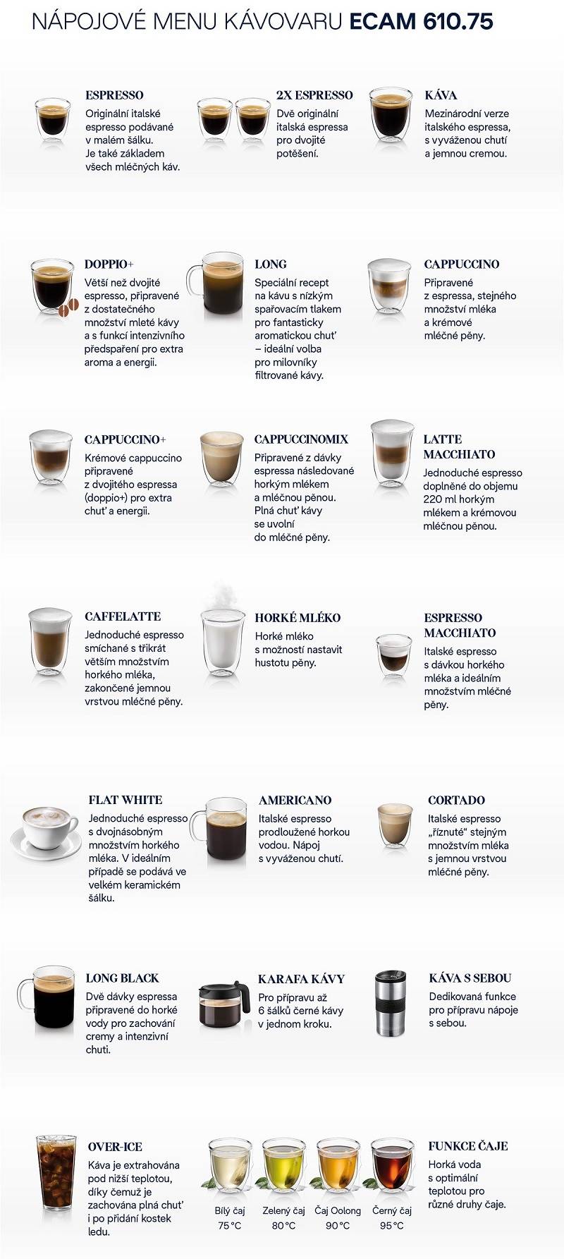 - Kávové nápoje s 5 uživatelskými profily