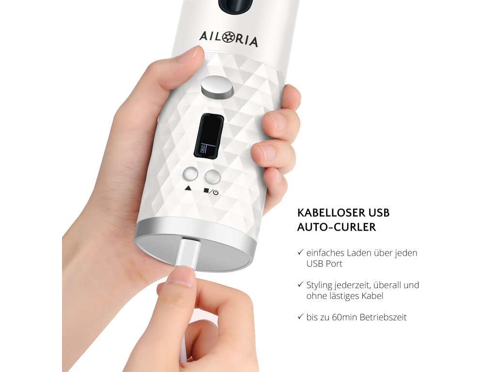 Bezdrátová automatická kulma Ailoria Revolutionne / 150 °C – 200 °C / 2 směry natáčení / bílá