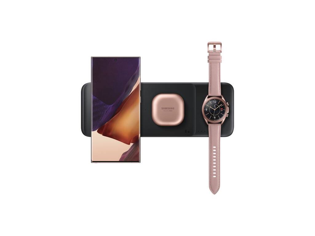 Nabíjejte až tři kompatibilní zařízení současně bezdrátovou nabíječkou Samsung Wireless Charger Trio s podporou Fast Charge. Smartphone, chytré hodinky i sluchátka, jako jsou Galaxy Buds, najdou na dobíjecí podložce své místo. Kompaktní minimalistický design s USB-C kabelem o délce 1 m oceníte doma i na cestách. Nabíječka váží 320 g a vejde se do každé tašky.