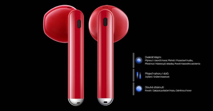 Zařízení budete moci používat pomocí jednoduchých a maximálně intuitivních ovládacích gest, které navíc budete moci používat na obou sluchátkách. Dvojitým klepnutím ukončíte či přijmete hovor v režimu hands-free či přeskočíte na následující nebo předchozí skladbu. Přejetím nahoru a dolů posléze zvýšíte či snížíte hlasitost a dvojitým stiskem povolíte nebo zakážete funkci potlačení okolního hluku, popřípadě odmítnete příchozí hovor.