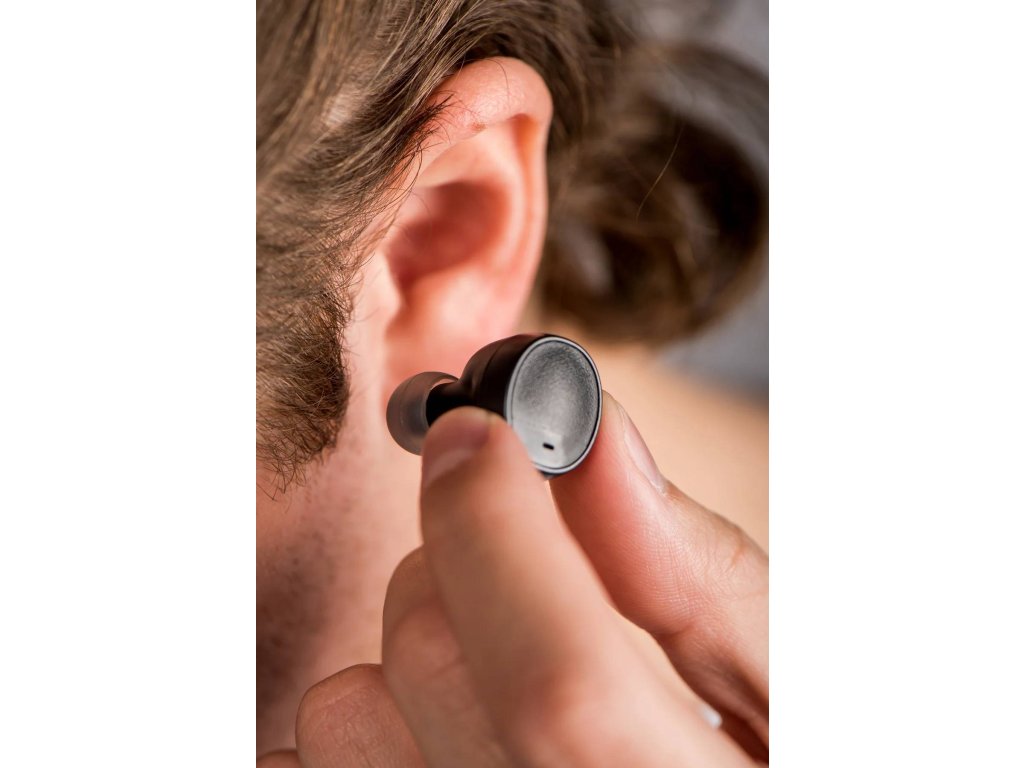 S bezdrátovými sluchátky Lenco EPB-450BK můžete také volat. Na vnější straně samostatných špuntů do uší je otvor pro mikrofon, který směřuje dolů, aby správně zachytil veškerý zvuk během hovoru.