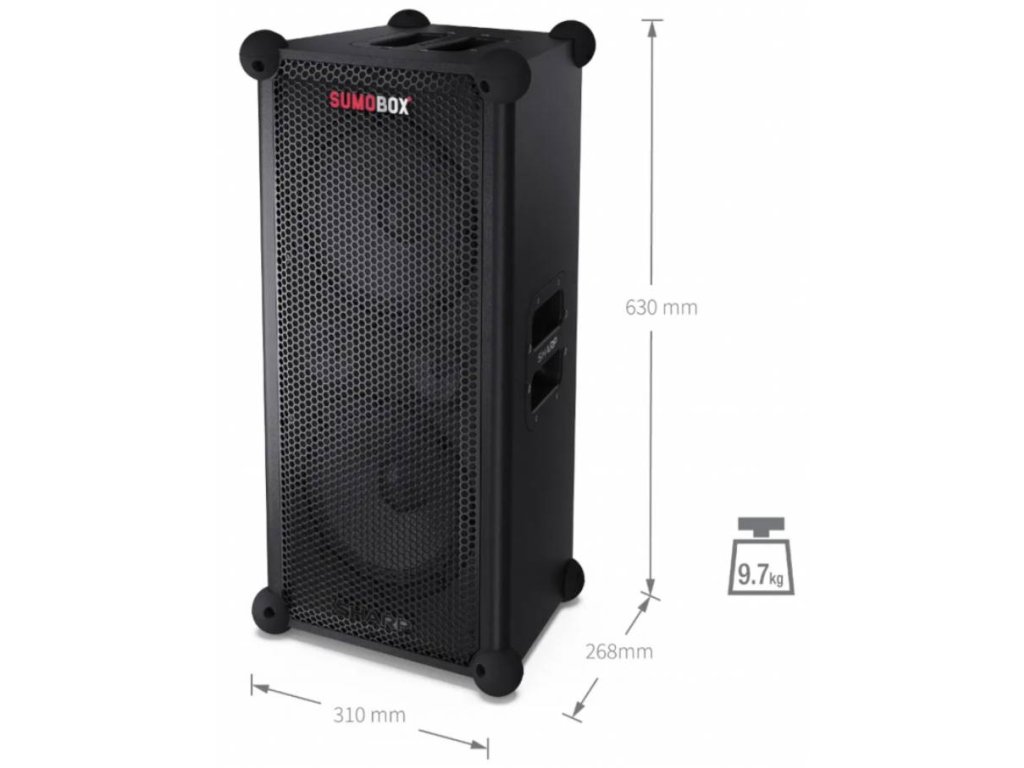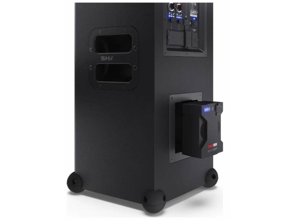 Sharp SumoBox CP-LS100 je výkonný bezdrátový přenosný reproduktor navržený pro party, akce i domácí poslech s bohatým zvukem a vysokou hlasitostí.