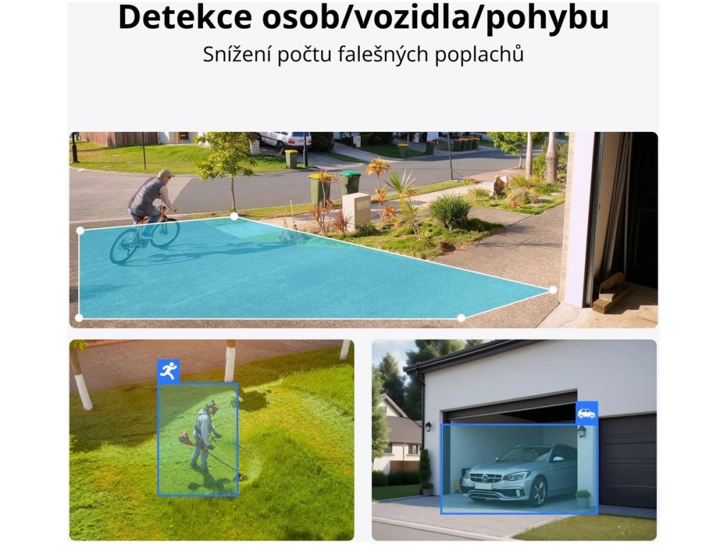 Integrovaná umělá inteligence rozpozná osoby, vozidla i zvířata. To znamená méně planých alarmů a více relevantních upozornění, která vám dorazí okamžitě do mobilu nebo e-mailu.