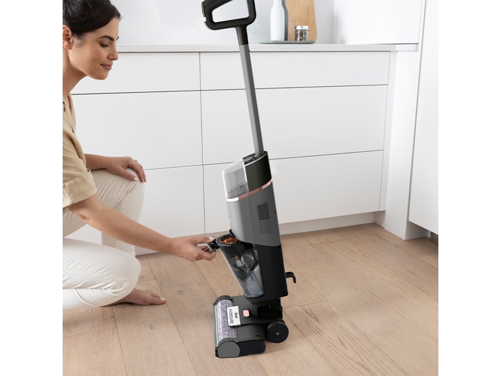 Díky bezdrátové svobodě vám funkce HydroVac umožňuje vyčistit celý váš domov na jedno nabití, což vám ušetří čas a námahu. Funkce HydroVac vysává a myje vaši podlahu současně, což znamená, že efektivně vysává mokrou špínu, špínu a zanechává vaše podlahy čisté a suché téměř okamžitě. Se dvěma nastaveními čištění nabízí HydroVac hloubkové čištění tvrdých podlah, jako je tvrdé dřevo, dlaždice, mramor a utěsněné lamináty, zatímco osvěžuje koberce a tenké koberce a odstraňuje povrchové nečistoty a pachy.