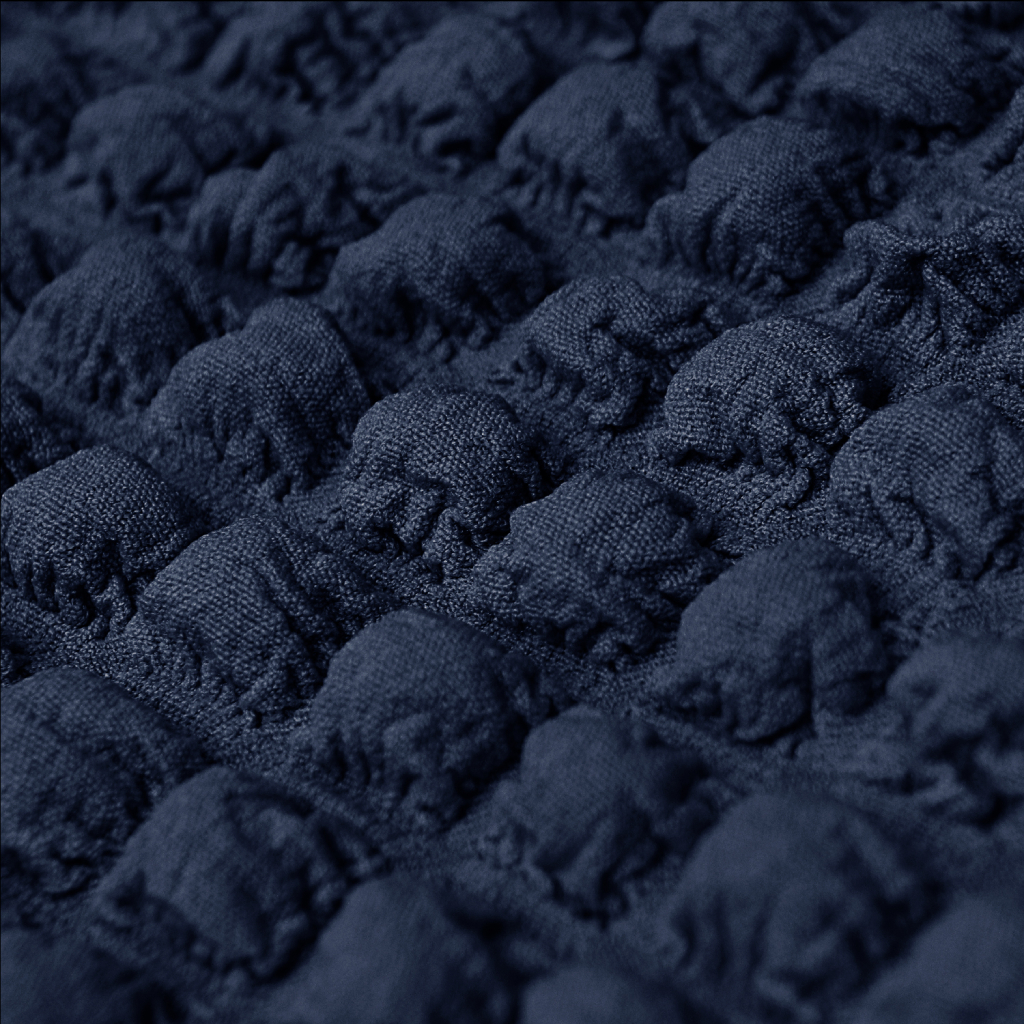 Bielastický potah dodá vašemu interiéru nový nádech a elegantní vzhled. Také chrání dvojsedačku před nečistotami, rozlitými tekutinami a poškozením způsobeným běžným používáním. Materiál je příjemný na dotek, snadno pratelný a odolný proti skvrnám, což usnadňuje čištění. Díky vysoké pružnosti spandexu bude potah lépe sedět a skvěle se přizpůsobí tvaru vaší pohovky. Bublinkový vzor dodává sedačce moderní a atraktivní vzhled.