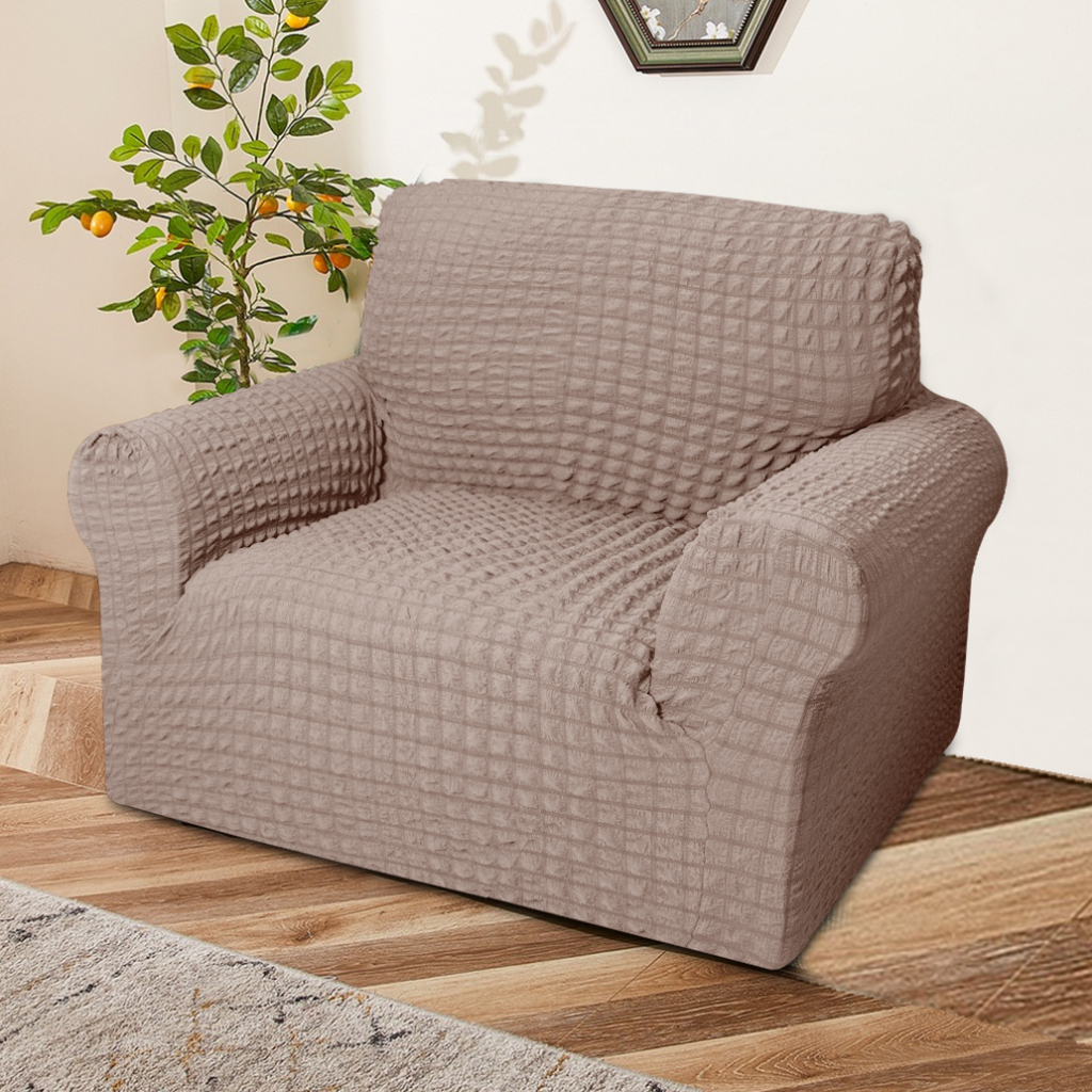 Bielastický potah dodá vašemu interiéru nový nádech a elegantní vzhled. Také chrání křeslo či pohovku před nečistotami, rozlitými tekutinami a poškozením způsobeným běžným používáním. Materiál je příjemný na dotek, snadno pratelný a odolný proti skvrnám, což usnadňuje čištění. Díky pružnosti spandexu bude potah lépe sedět a skvěle se přizpůsobí tvaru vašeho křesla. Bublinkový vzor dodává sedačce moderní a atraktivní vzhled.