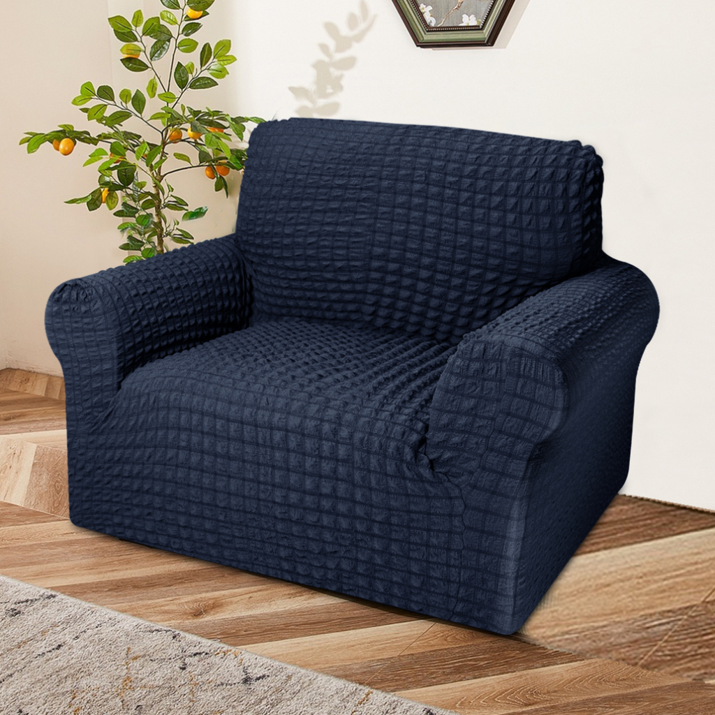 Bielastický potah dodá vašemu interiéru nový nádech a elegantní vzhled. Také chrání křeslo či pohovku před nečistotami, rozlitými tekutinami a poškozením způsobeným běžným používáním. Materiál je příjemný na dotek, snadno pratelný a odolný proti skvrnám, což usnadňuje čištění. Díky pružnosti spandexu bude potah lépe sedět a skvěle se přizpůsobí tvaru vašeho křesla. Bublinkový vzor dodává sedačce moderní a atraktivní vzhled.