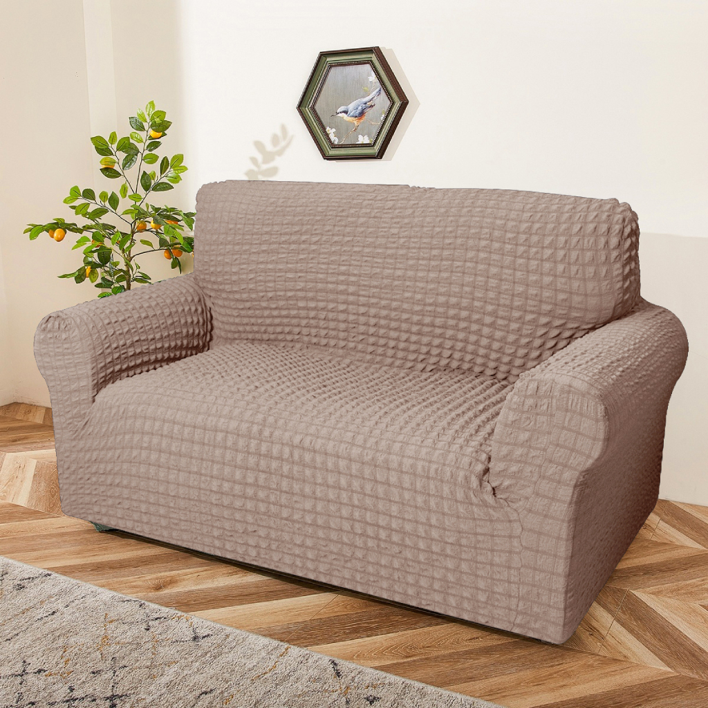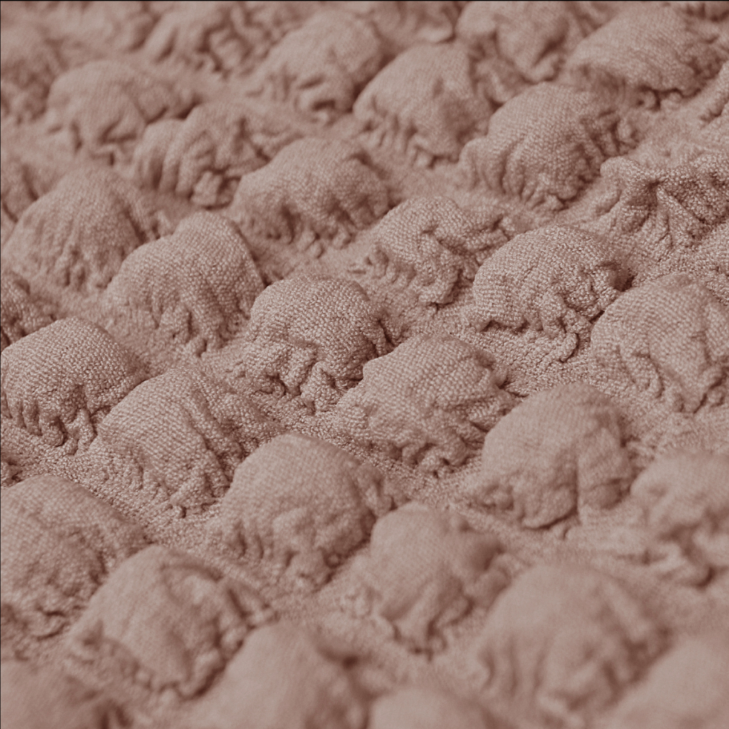 Bielastický potah dodá vašemu interiéru nový nádech a elegantní vzhled. Také chrání trojsedačku před nečistotami, rozlitými tekutinami a poškozením způsobeným běžným používáním. Materiál je příjemný na dotek, snadno pratelný a odolný proti skvrnám, což usnadňuje čištění. Díky vysoké pružnosti spandexu bude potah lépe sedět a skvěle se přizpůsobí tvaru vaší pohovky. Bublinkový vzor dodává sedačce moderní a atraktivní vzhled.