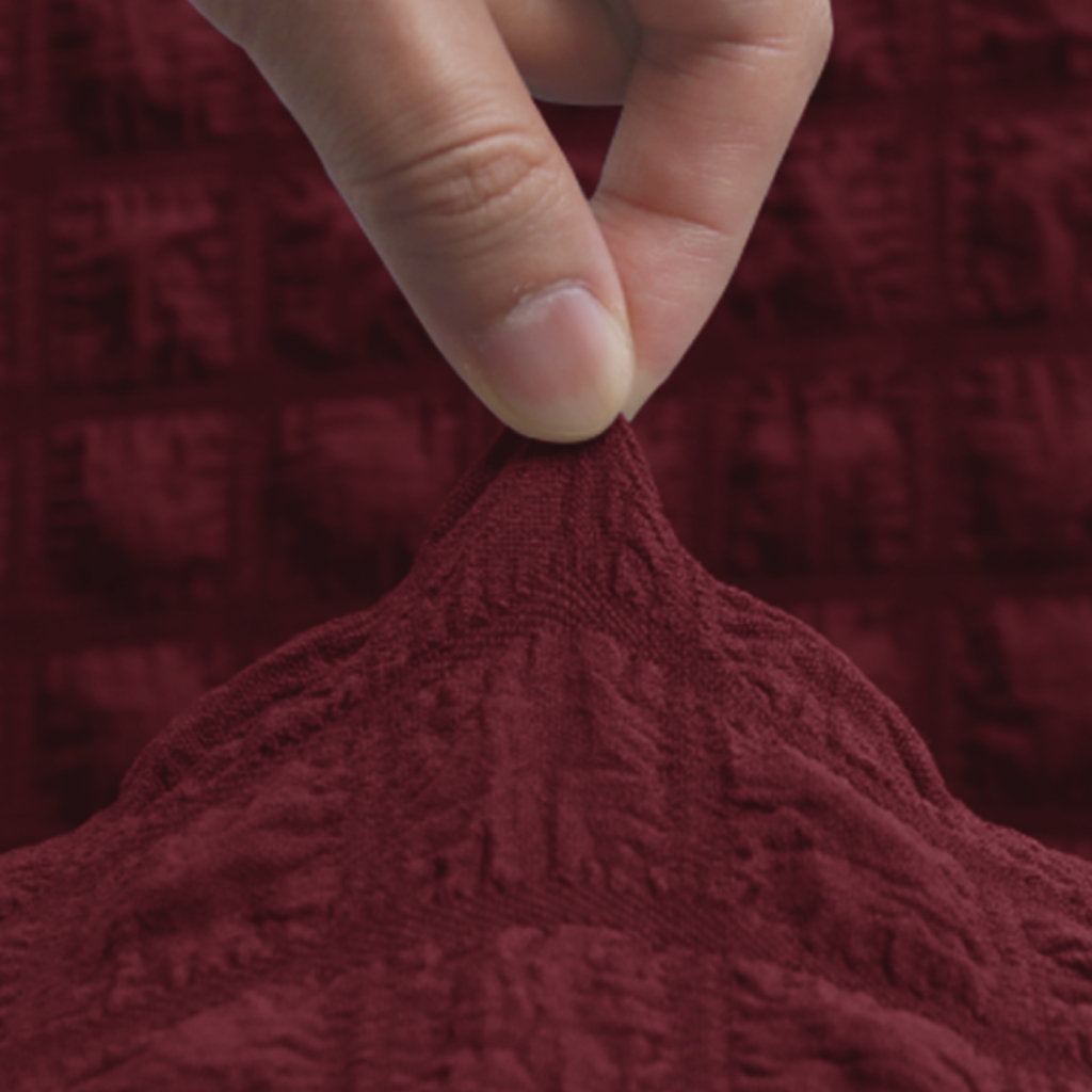 Bielastický potah dodá vašemu interiéru nový nádech a elegantní vzhled. Také chrání trojsedačku před nečistotami, rozlitými tekutinami a poškozením způsobeným běžným používáním. Materiál je příjemný na dotek, snadno pratelný a odolný proti skvrnám, což usnadňuje čištění. Díky vysoké pružnosti spandexu bude potah lépe sedět a skvěle se přizpůsobí tvaru vaší pohovky. Bublinkový vzor dodává sedačce moderní a atraktivní vzhled.