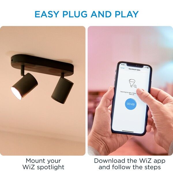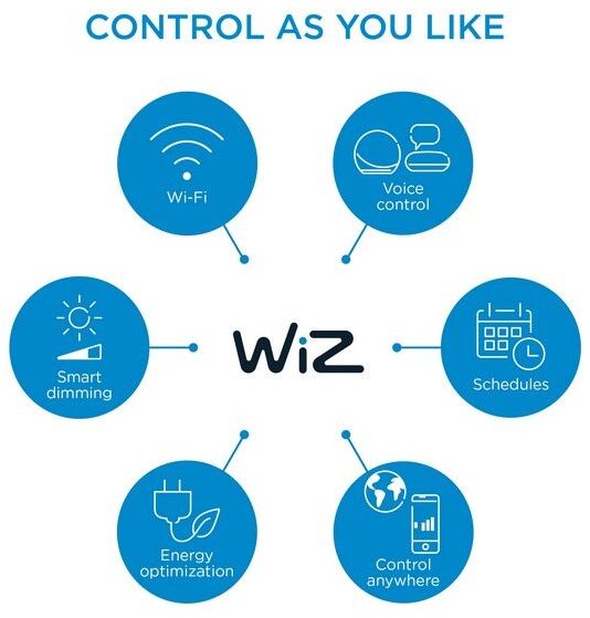 WiZ se připojuje přímo do vaší Wi-Fi sítě a není potřeba žádné další zařízení. Stačí instalovat svítidlo, stáhnout aplikaci WiZ či technologii Bluetooth a máte hotovo.
