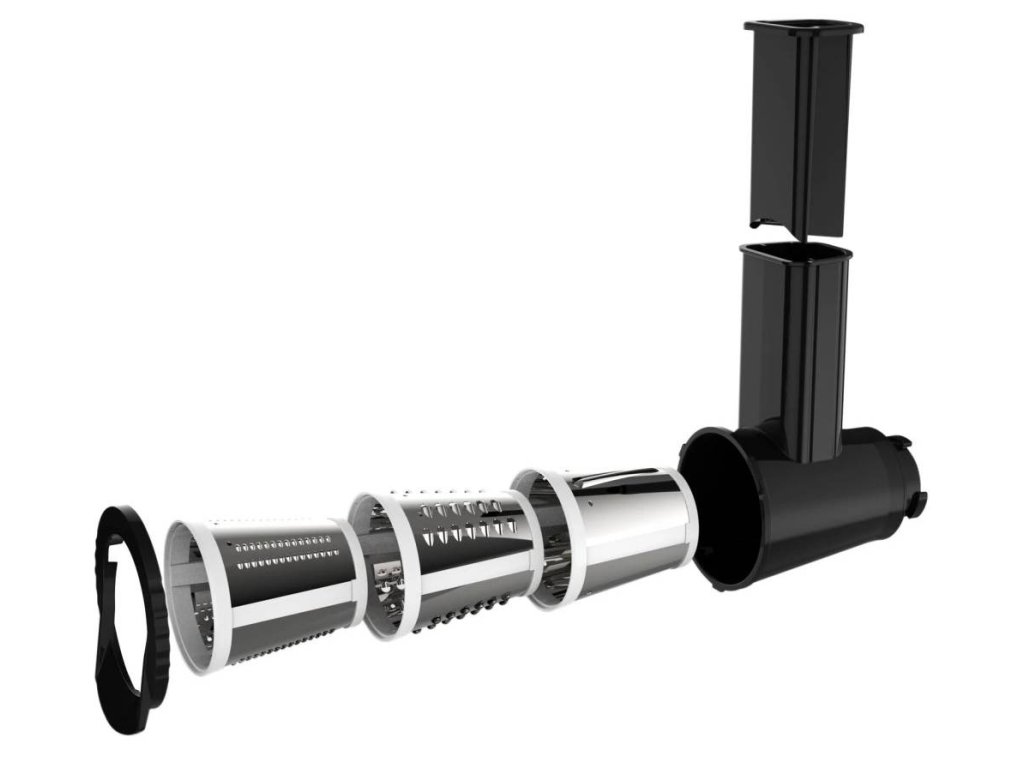 Pro rychlou přípravu zeleniny, ovoce, sýrů nebo ořechů je tu celé tělo struhadla s trojicí bubnů – jemným, středním a hrubým. Díky široké násypce můžete bezpečně a pohodlně zpracovávat i větší kusy potravin, aniž byste museli přerušovat práci. Získáte tak dokonale nastrouhané suroviny pro saláty, pomazánky, těsta či dezerty během pár vteřin.