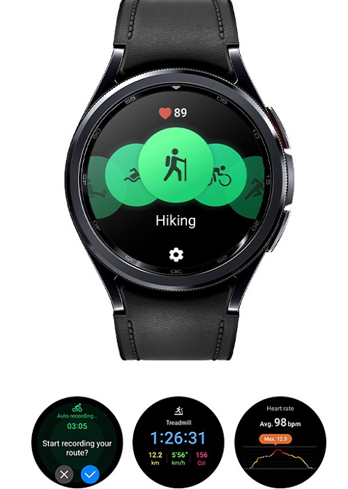 Získejte s hodinkami Galaxy Watch6 Classic cenný vhled do vašich cvičebních úspěchů a pokroků. Měřte až 90 druhů fyzické aktivity, nebo si vytvořte své vlastní, přičemž v obou případech budete moci sledovat svou denní aktivitu a dosažený pokrok. Nabízí se i možnost aktivovat automatickou detekci pro vybrané druhy tréninku jako je běh, chůze či nově cyklistika, takže budete moci přejít od rozehřátí rovnou k maximální aktivitě.