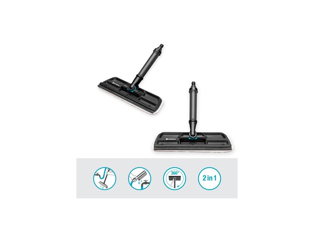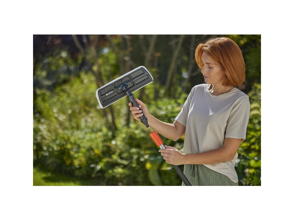 Čistič je navržen především pro venkovní použití – hodí se na okna, skleníky, zimní zahrady, zastřešení teras i další prosklené konstrukce. Při použití s průtokovou násadou lze regulovat množství přiváděné vody a v kombinaci s čisticím šamponem GARDENA dosáhnout ještě lepších výsledků. Odnímatelná utěrka z mikrovlákna je omyvatelná a dostupná i jako samostatný náhradní díl.
