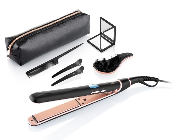 Díky svému odpružení navíc destičky perfektně přilnou k vlasům a narovnají je rychleji. V dárkovém pouzdře najdete kromě žehličky také kartáč na vlasy, hřeben, dva klipy pro sepnutí pramenů a praktické zrcátko. Dárkové pouzdro funguje skvěle i jako cestovní taška, celý set tak můžete mít všude s sebou.