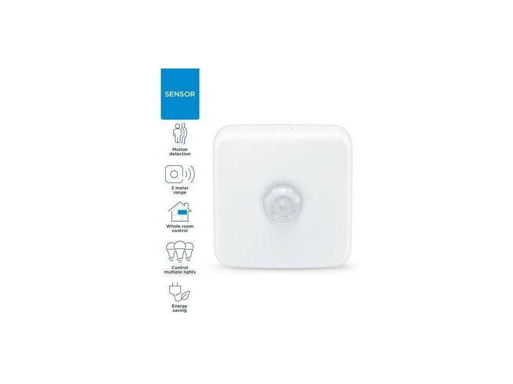 Bezdrátový pohybový vnitřní senzor WIZ MOTION SENZOR aktivuje automatické zapnutí nebo vypnutí světel podle detekce pohybu. Umístěte jej u vchodu nebo na chodbě a spusťte požadovaný světelný režim pouhým procházením.