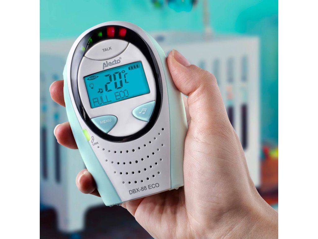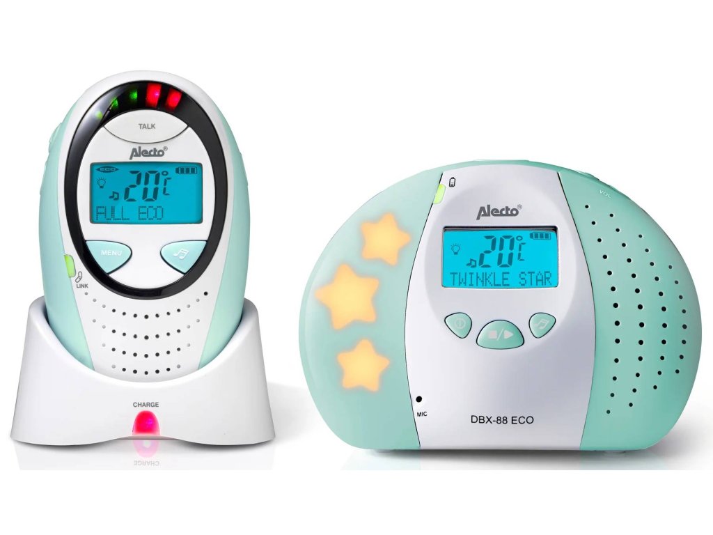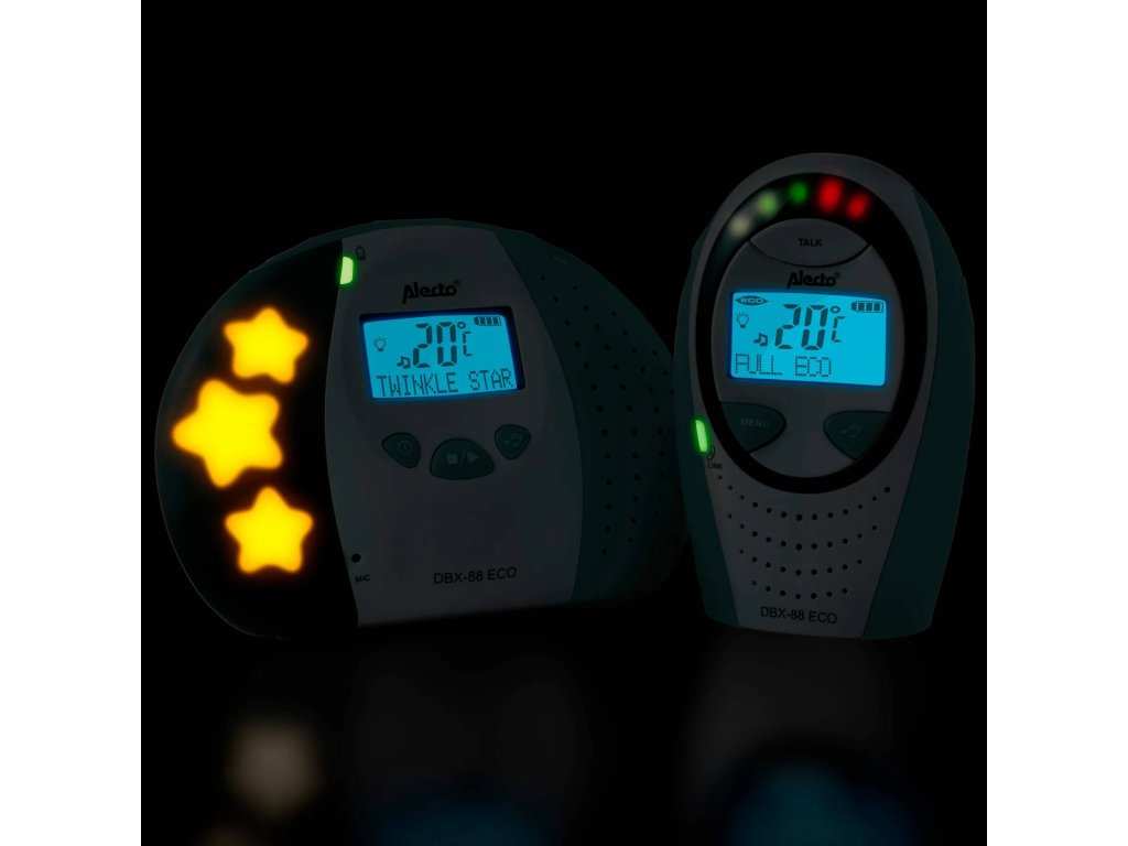 Dětská chůvička Alecto DBX-88MT nabízí základní funkce, které očekáváte od jakékoli chůvičky - bezpečné zvukové připojení k vašemu dětskému pokoji, zůstává nabitá po dlouhou dobu, poskytuje dobrý zvuk bez rušení a má široký rozsah, nastavitelný jazyk zobrazení (včetně holandštiny, francouzštiny, angličtiny a němčiny), audiovizuální displej pomocí LED světel, displej pokojové teploty s vysílačem, ukolébavka a noční světlo jsou na dálkové ovládání, doba použití až 24 hodin, dosah až 300 metrů venku, až 50 metrů uvnitř, funkce zpětného hovoru.