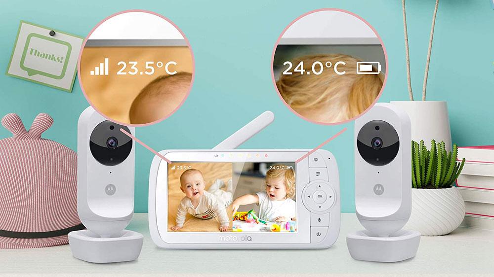 Dětská chůvička Motorola VM35-2 poskytuje s bezdrátovou technologií 2,4 GHz FHSS a dosahem 300 m možnost neustálé kontroly vašeho dítěte při spánku. Pomocí dvou otočných naklápěcích kamer s infračerveným nočním viděním a 5" barevného displeje s rozdělenou obrazovkou budete mít dokonalý přehled o dění v dětské postýlce. 2 000mAh dobíjecí baterie vydrží na jedno nabití až 5 hodin, přičemž ji lze poté snadno dobít v 230 V síti.