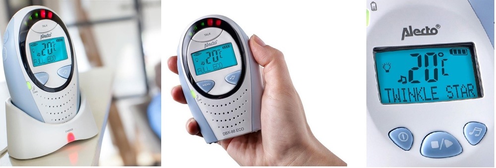 Součástí balení je rodičovská a dětská jednotka, přičemž dětská jednotka umožňuje provoz pouze se zapojením do sítě. Rodičovskou jednotku je možné zapojit do sítě nebo ji využít na bateriový provoz s pohotovostní dobou až 24 hodin, a mít tak možnost se pohybovat mimo zdroj napětí. Jakmile se bude baterie vybíjet, upozorní vás zvukový signál a vy budete mít dostatek času na umístění rodičovské jednotky do sítě. Nechybí ani možnost ovládání hlasitosti. Na rodičovské jednotce je umožněno ztlumit hlasitost přenosu až do tichého režimu. Sledováním světelných kontrolek, které se v závislosti na intenzitě hluku budou jedna po druhé rozsvěcovat, pouhým pohledem rychle zjistíte, zda se již miminko dožaduje vaší přítomnosti.