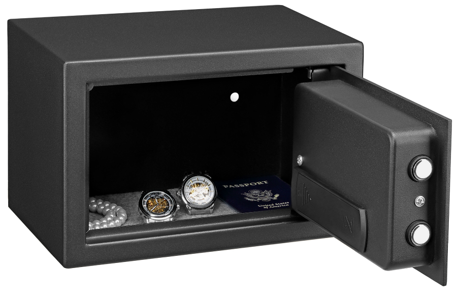 Trezor je vyroben z vysoce kvalitního kovu, což zajišťuje jeho odolnost a dlouhou životnost. Trezor lze pevně připevnit k podlaze nebo na stěnu, jenž nabízí umístění dle vaší libosti a dostupných prostorů. Podlaha trezoru je vybavena ochranným koberečkem, který chrání vaše cennosti před poškozením. Tloušťka stěn je 1,5 mm a tloušťka dveří 4 mm, což poskytuje vysokou úroveň ochrany. Vnitřní rozměry trezoru jsou 19,7 x 30,7 x 14 cm, které jsou ideální k uložení menších cenností, jako jsou například šperky, hodinky, cenné papíry či peníze.