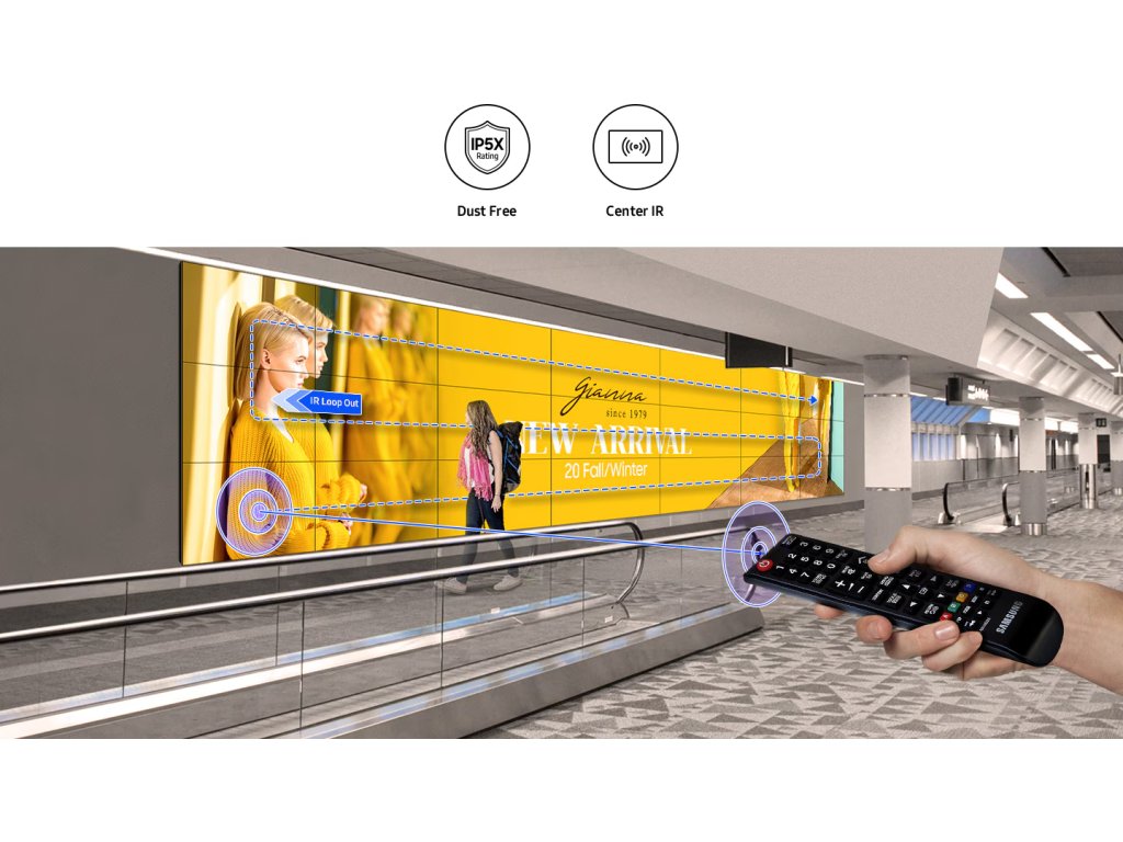 Řada VMB-U je navržena tak, aby odolala různým nepříznivým podmínkám a vlivům prostředí. Díky standardu odolnosti proti prachu IP5x lze displej bezpečně umístit i do prašných prostor bez nutnosti další ochrany. Vestavěný centrálně umístěný infračervený přijímač (IR) pak zajišťuje uživatelům pohodlné a flexibilní ovládání zařízení.