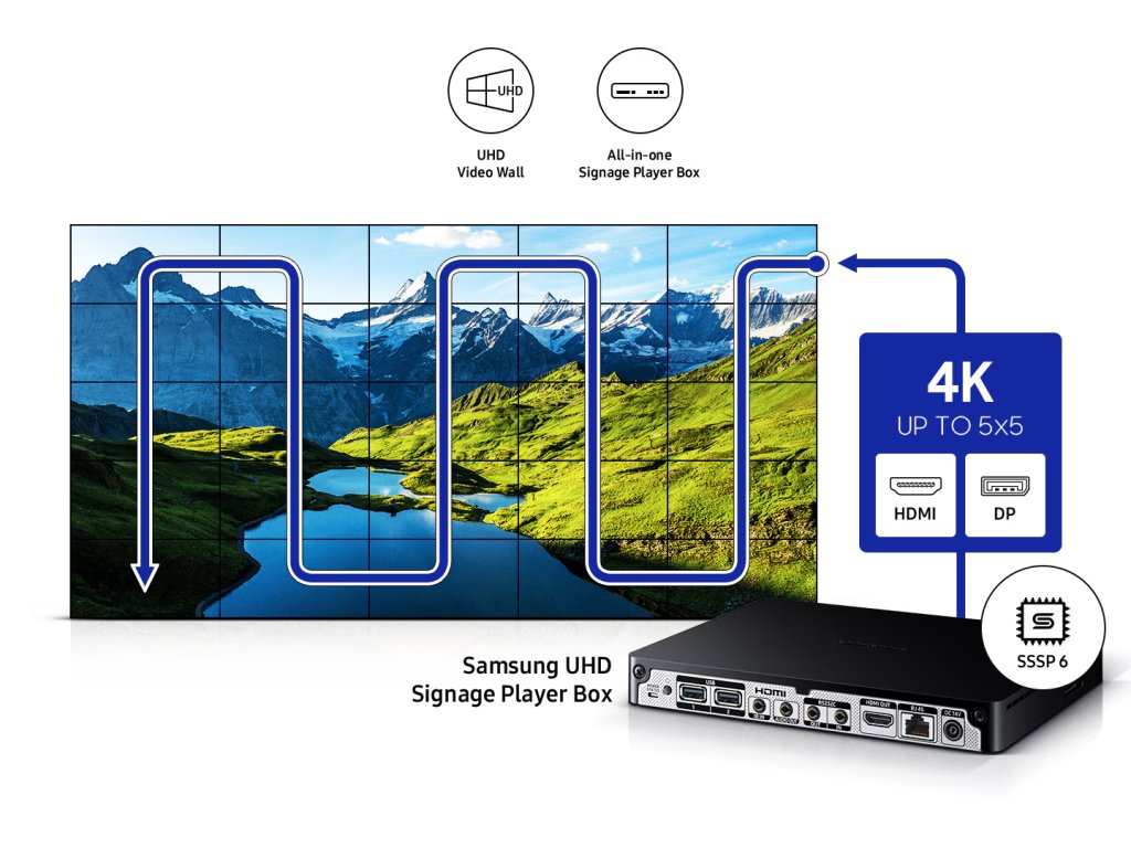 Upoutejte pozornost svých zákazníků hned na první pohled s pohlcujícím displejem ze série Samsung VMB-U, který nabízí spolehlivý nepřetržitý provoz 24 hodin denně, 7 dní v týdnu. Jeho štíhlý design s minimální hloubkou a velmi tenkým rámečkem poskytuje prostorově efektivní řešení ideální do prodejen, zasedacích či kontrolních místností, kde dokonale zobrazí veškerý váš obsah. Jas 500 nitů zajistí vynikající obraz i v prostředí s intenzivním osvětlením, například v nákupních centrech nebo blízko oken.