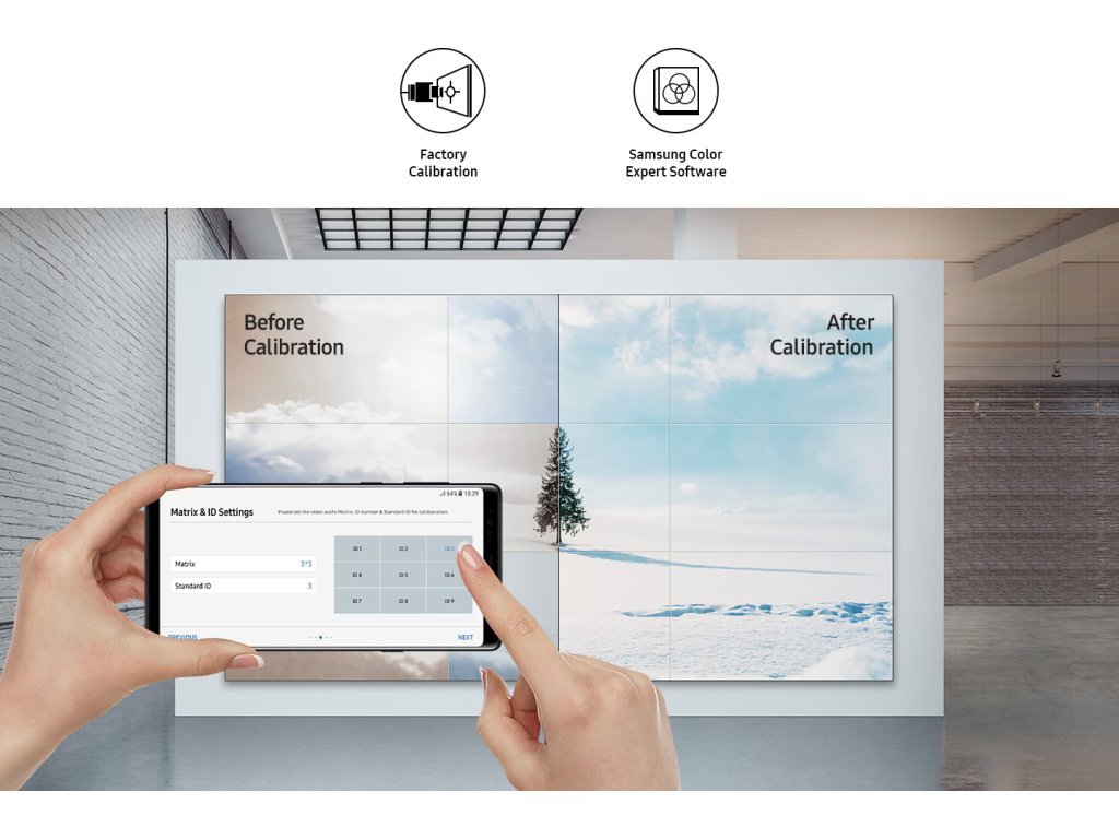 Víceúrovňové tovární nastavení zajišťuje jednotný jas a věrné barvy napříč displeji. Uživatelé pak mohou jednotlivé parametry přizpůsobit pomocí bezplatného a výkonného softwaru Color Expert Pro. Pro rychlou a snadnou kalibraci displejů až do velikosti 3x3 lze navíc využít fotoaparát mobilního telefonu spolu s aplikací Color Expert Pro Mobile, kterou si stačí stáhnout.
