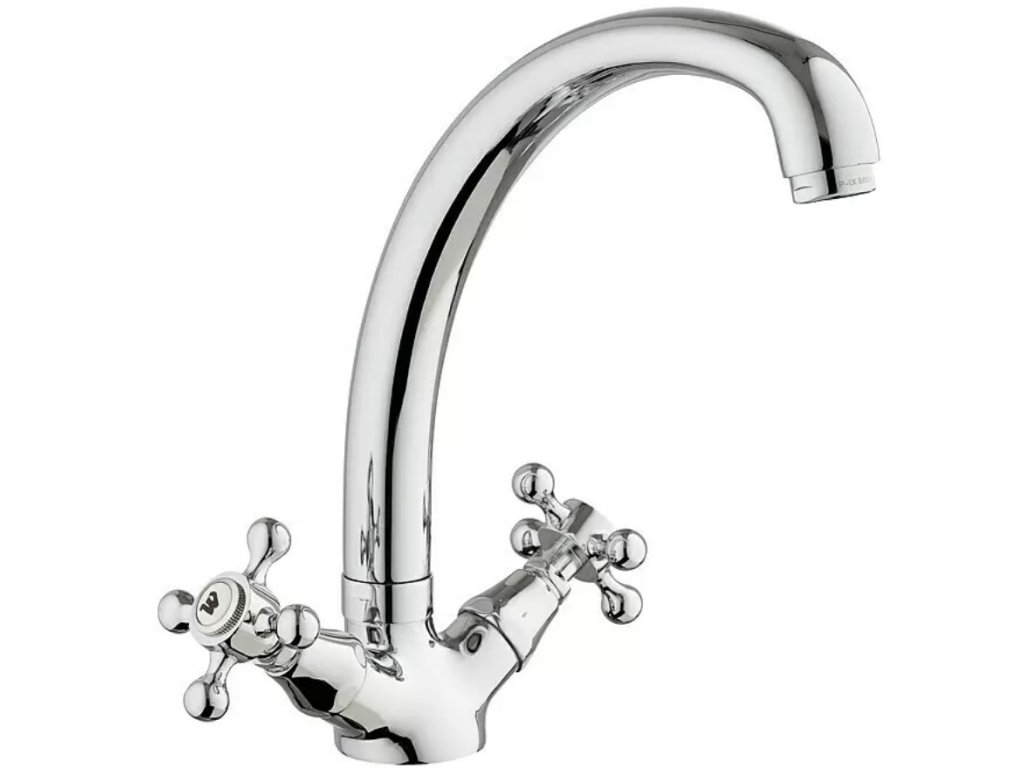 Dřezová baterie se svým elegantním retro designem dokonale upoutá pozornost. Vysoký průtok nabízí skvělé pohodlí při mytí nádobí, protože i velké hrnce se nyní snadno vejdou do dřezu. Díky flexibilním propojovacím hadicím, které jsou součástí dodávky, nemusíte při montáži ohýbat žádné trubky, ale stačí hadice vést k rohovému ventilu.