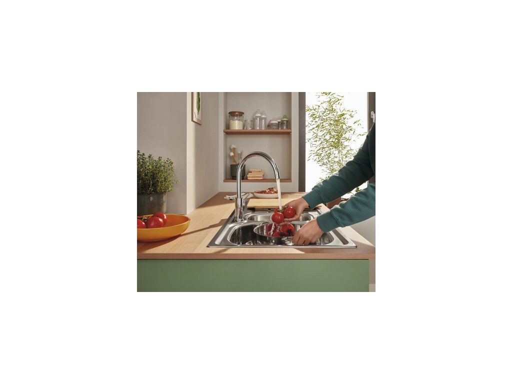 Dřezová baterie Grohe Start Classic v chromovém provedení přináší do kuchyně nadčasový design a každodenní komfort. Tradiční tvar s vysokým výtokem ve tvaru C působí elegantně a zároveň je maximálně praktický – bez problémů umožňuje plnění i oplachování vysokých hrnců a nádob. Lesklý chromový povrch dodává baterii luxusní vzhled a snadno se udržuje.
